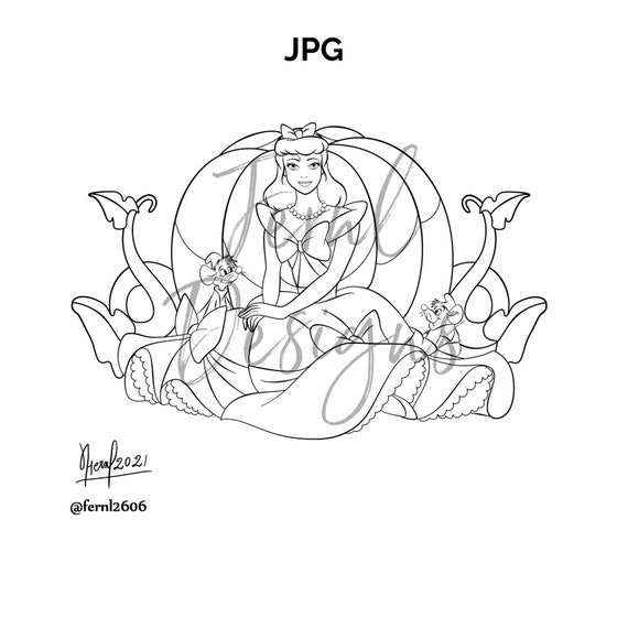 Cinderella Princess Fan Art Stamp Coloring Page Clipart Etsy